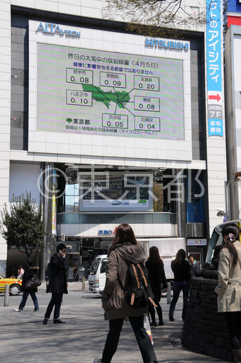 タイトル: 新宿駅東口で放射線量の街頭ビジョン放映
