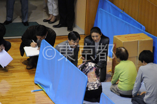 タイトル: 皇太子殿下とまさ子妃が味の素スタジアムへ避難民を訪問(東日本大震災)