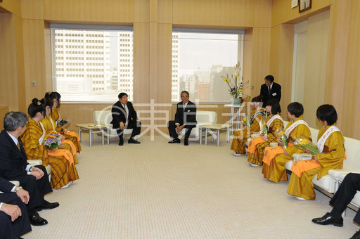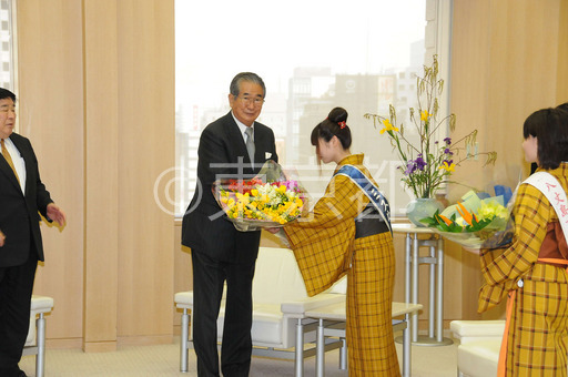 タイトル: 八丈フリージアキャラバン隊が石原知事を訪問