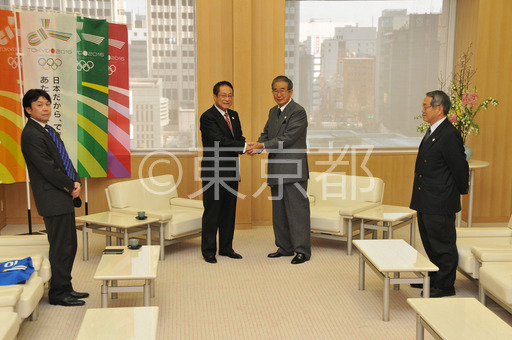 タイトル: 犬飼サッカー日本協会会長の石原知事表敬