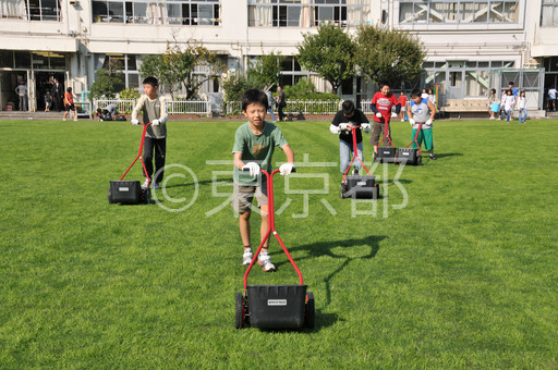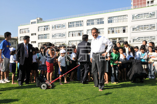 タイトル: 校庭芝生化の石原知事視察