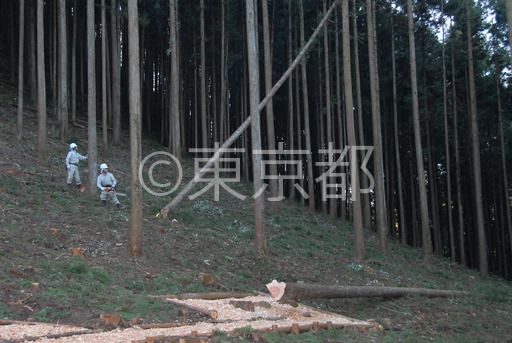 タイトル: 花粉の少ない森づくり運動 伐採開始式