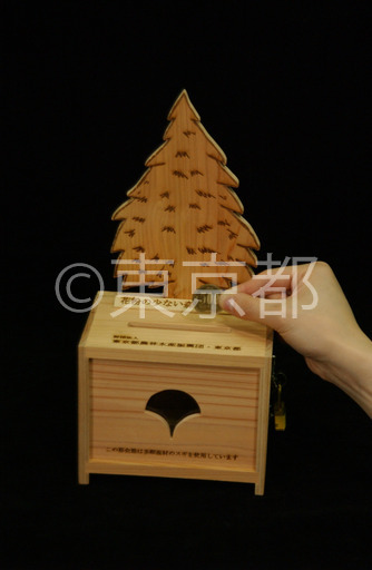 タイトル: 花粉の少ない森づくり募金の募金箱