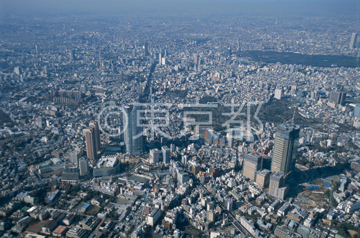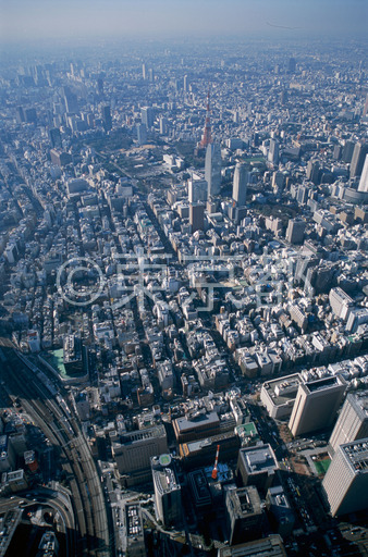 タイトル: 日比谷通り上空より東京タワーを望む
