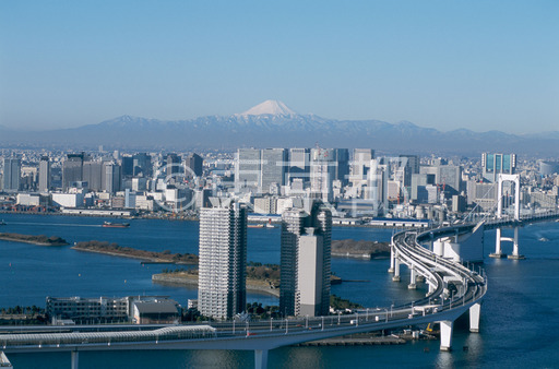 タイトル: レインボーブリッジと富士山