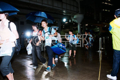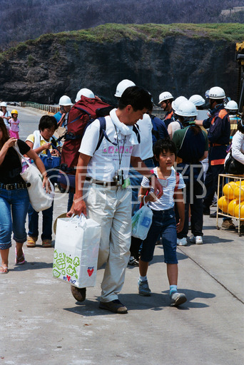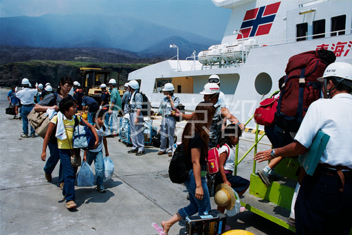 タイトル: 三宅島児童一時帰島出発