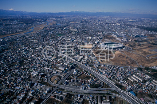 タイトル: 中央自動車道調布インターチェンジと東京スタジアム