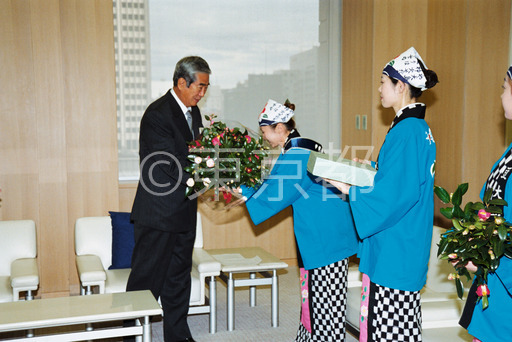 タイトル: 伊豆大島椿まつりキャンペーン隊の石原知事訪問