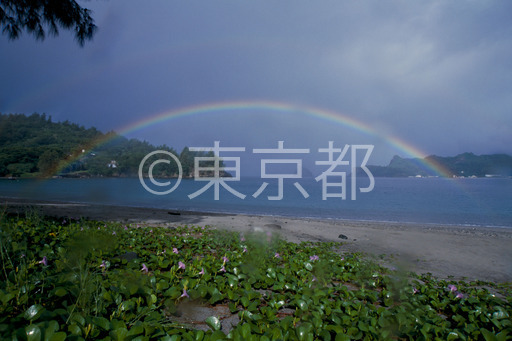 タイトル: 小笠原扇浦海岸の虹