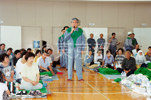 タイトル: 三宅島火山活動 石原知事視察 避難住民を激励