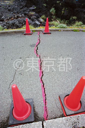 タイトル: 三宅島火山活動 道路の亀裂