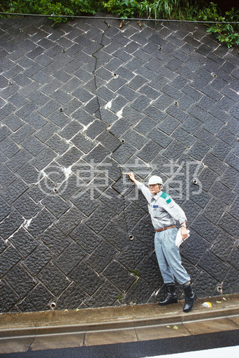 タイトル: 三宅島火山活動 石垣の亀裂