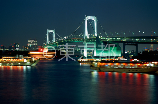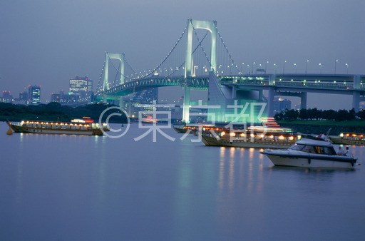 タイトル: レインボーブリッジと納涼船