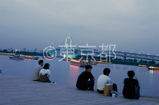 タイトル: お台場海浜公園の夕涼み