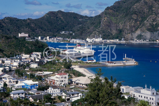 タイトル: 大根山墓地からみた父島二見港
