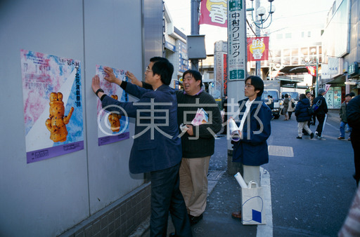タイトル: 下北沢区民演劇祭のポスターを貼る区民