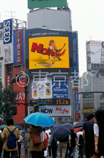 タイトル: 渋谷駅前ビルの大テレビ