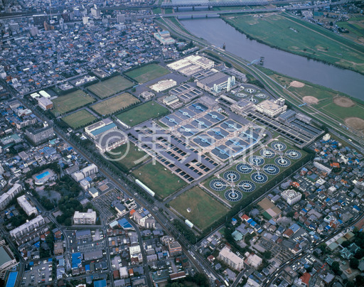 タイトル: 金町浄水場の全景(空撮)