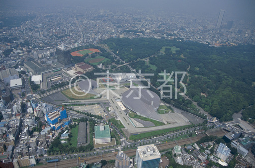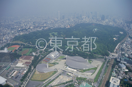 タイトル: 代々木公園と国立代々木競技場(空撮)