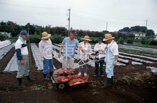 タイトル: トラクターの技術指導を受ける農業ボランティア