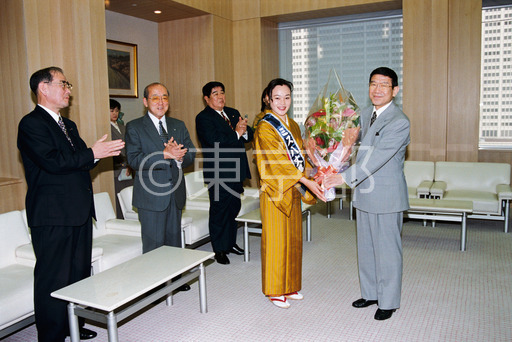 タイトル: 八丈島フリージアまつりキャラバン隊と青島知事面会