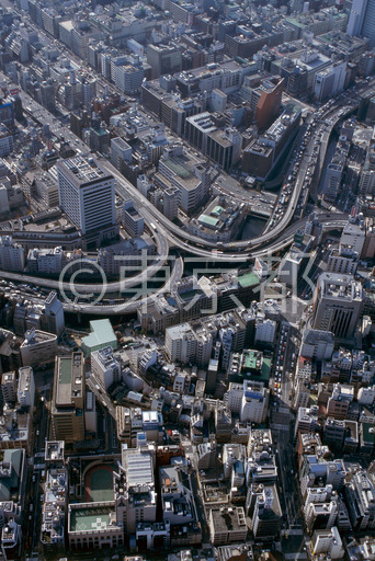 タイトル: 日本橋界隈と首都高速道路江戸橋インターチェンジ(空撮)
