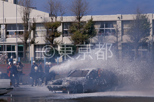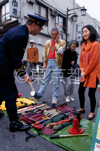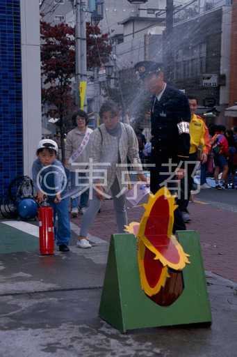 タイトル: 商店街の防災訓練-初期消火