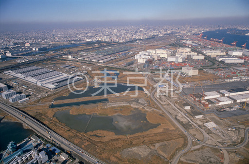タイトル: 東京港野鳥公園と中央卸売市場大田市場(空撮)