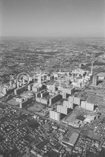 タイトル: 光が丘団地中心部、煙突は清掃工場(空撮)