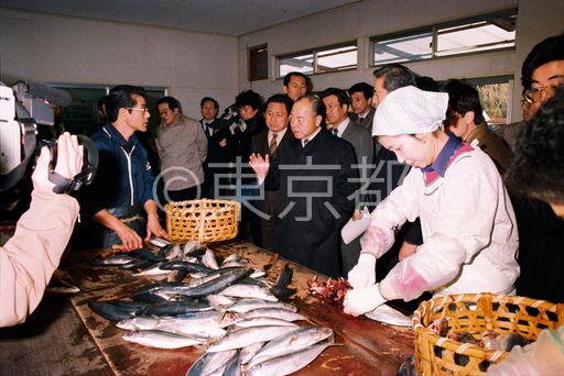 タイトル: くさやの加工場を見る鈴木知事