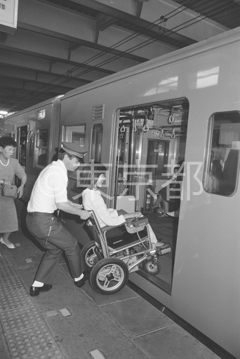 タイトル: 駅のホームと電車の間には段差があるので、駅員の手を借りないと乗車ができない