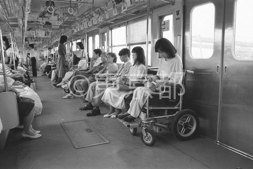 タイトル: 車イスで電車に乗るときは、ドアの横に座ることになる
