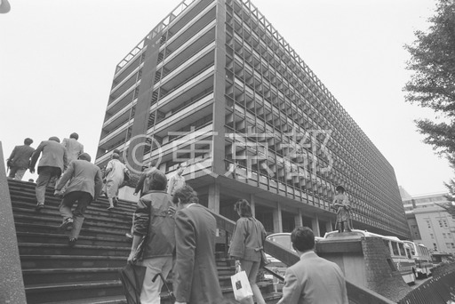 タイトル: 丸の内都庁と登庁する職員
