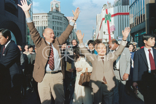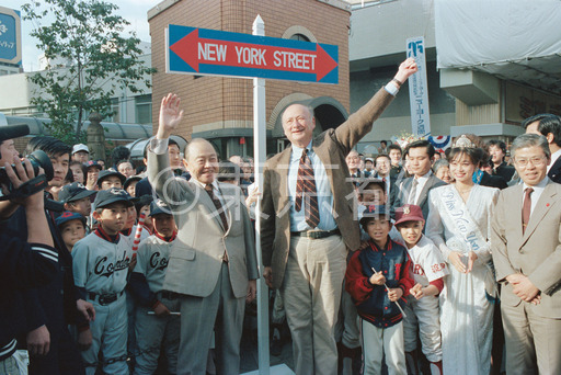 タイトル: ニューヨーク市長コッチさん鈴木知事歩行者天国を楽しむ